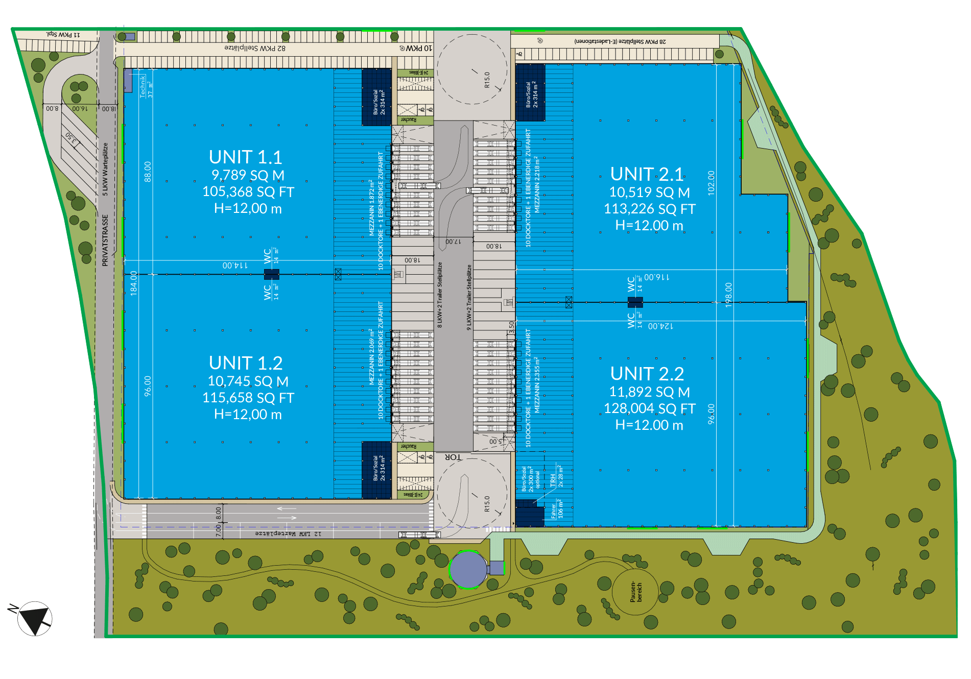 The Schifferstadt site has excellent transport links to the A5 / A6 Rhine-Neckar freeway interchange. Large cities in the region such as Mannheim, Germersheim and Ludwigshafen have high-performance cargo handling ports on the Rhine which enable transport to the major overseas ports in Northern Europe by water.
